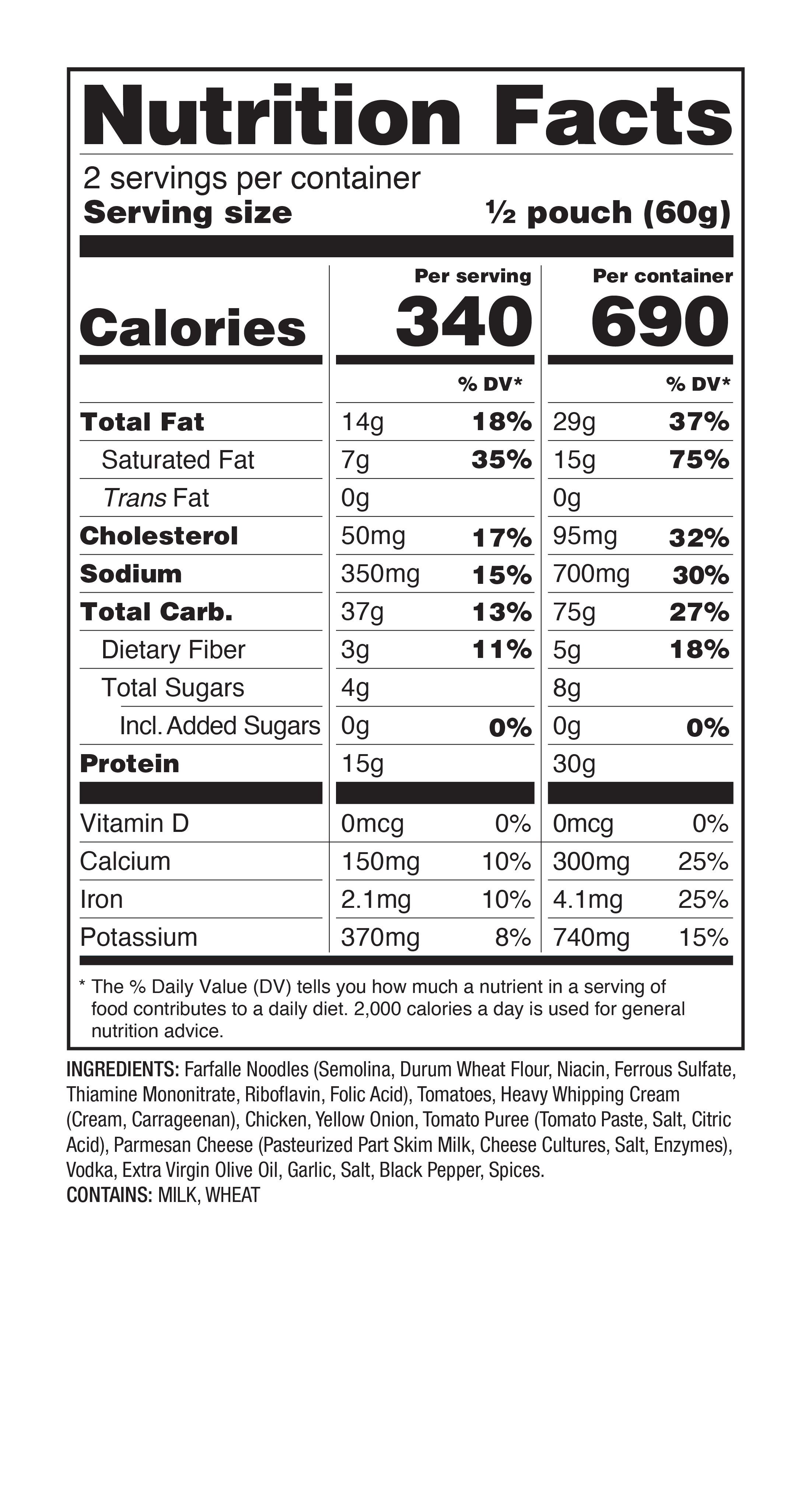 1.6 CT ReadyWise Pro Adventure Meal Farfalle alla Vodka with Chicken