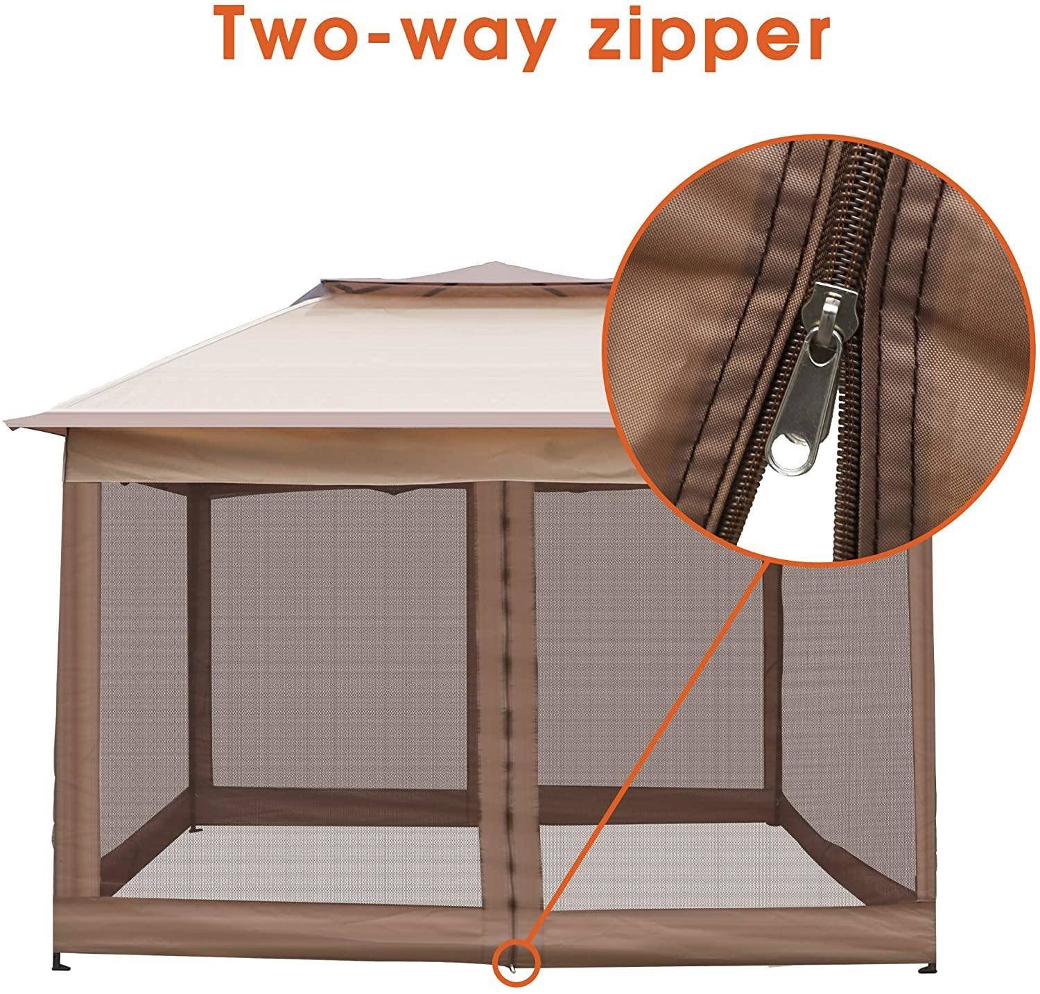 Mesh Sidewall- We added mesh sidewall around the tent and 4 of them are doors, provide excellent airflow while avoiding infestation by small animal; The zipper is a two-way zipper, you can use the zipper inside and outside.