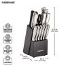 Farberware 5152497 15-Piece High-Carbon Stamped Stainless Steel Kitchen Knife Set with Wood Block, Steak Knives, Razor-Sharp, Black