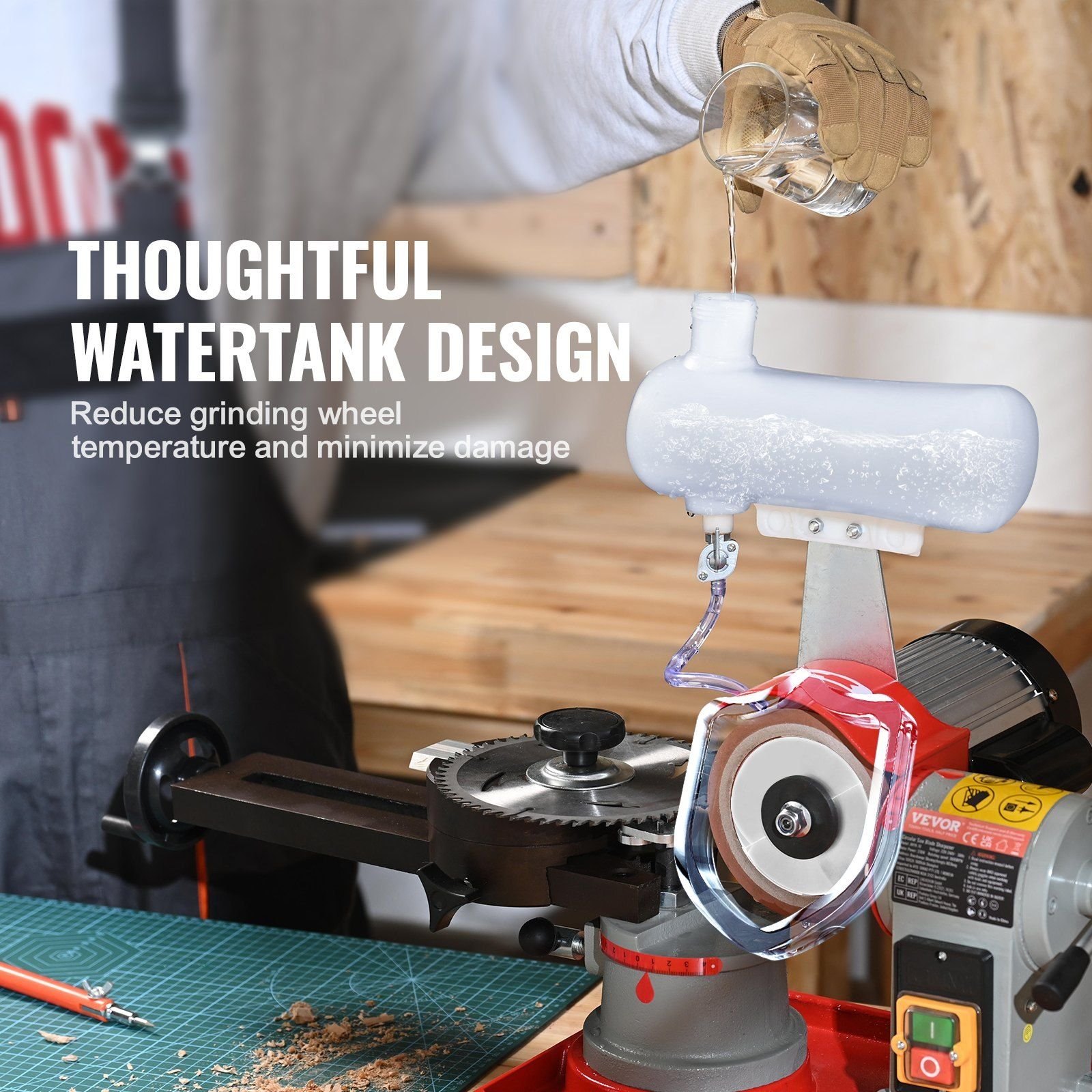 1.Sharper Blades, Smoother Cuts: Say goodbye to dull blades! VEVOR 370W powerful water injection circular saw blade sharpener, running at 3600RPM high speed, efficiently sharpens your saw blades to their former sharpness, leaving them razor-sharp, resilient, and burr-free.
